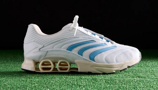 其中Predator Mania是在2002年世界杯上声名鹊起一款标志性的足球鞋,其标志性的折叠鞋舌上印有Kith Monogram图案,阿迪达斯条纹上则印有Kith FC的图案。